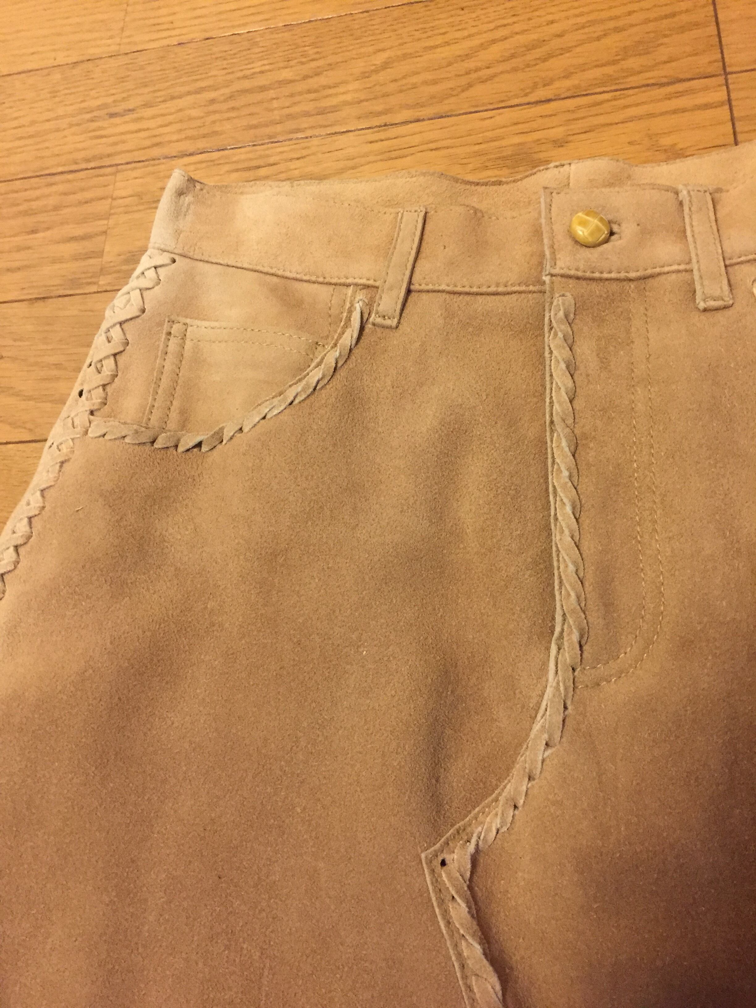 鹿スエードをレースアップ編上げデザインされたスカートで、ほとんどの部分を編上げています。後ろ中心はセンターベント仕様。
