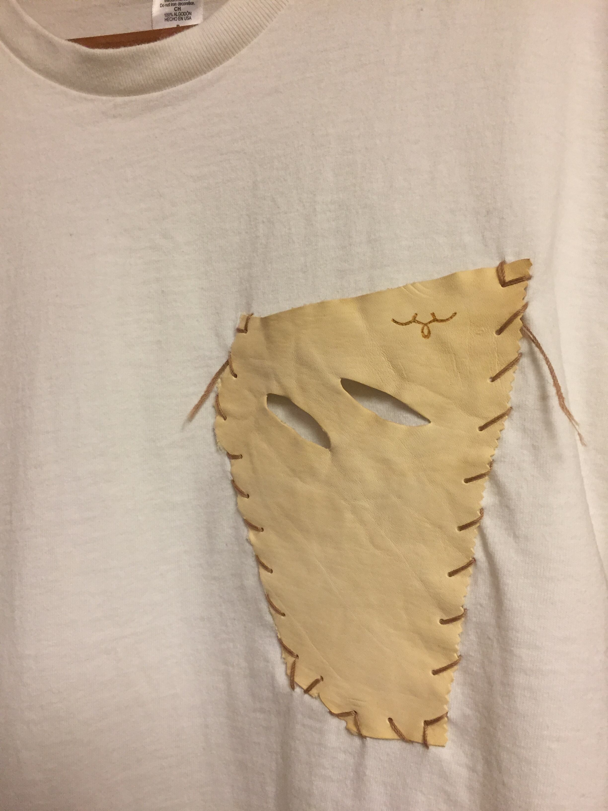 Medicne定番ヘビーウエイト米綿 Tシャツにベジタブルタンニング馬革の一頭で5〜6枚しか取れない稀少な部位の自然な状態のダメージをそのままポケットに生かして麻糸ハンドステッチ縫製し、ブランドマークをハンドブランディング(手焼印の為個体差あり)を施しウォッシュ加工しています。綿100% ポケット馬革 USサイズS(日本M)