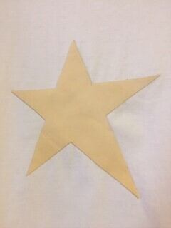Tシャツに馬革のメディスン・スターのシンボルモチーフを施した